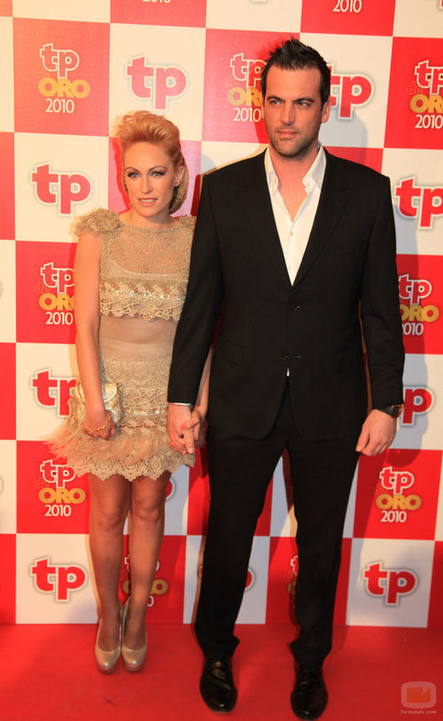 La presentadora de 'Hijos de papá', Luján Argüelles, junto con su marido, Benjamín de la Fuente, en los TP de Oro 2010.
