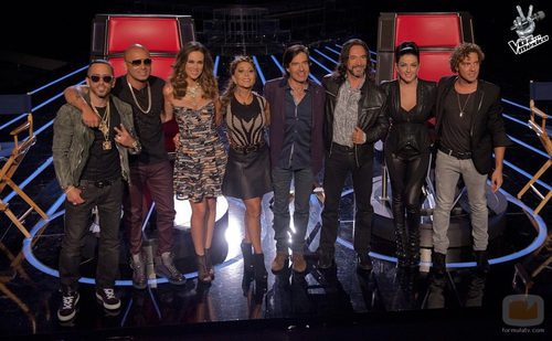La presentadora Jacqueline Bracamontes con el equipo de 'La Voz... México 3'