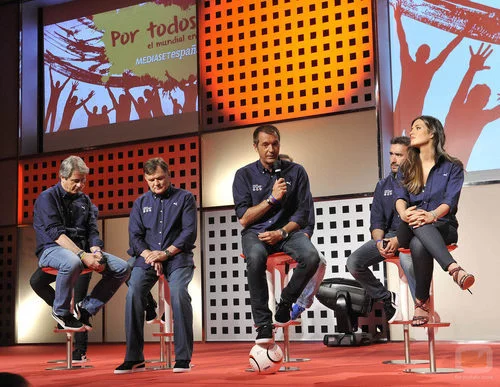 Manu Carreño toma la palabra en la presentación de la cobertura del Mundial de Brasil por Mediaset España