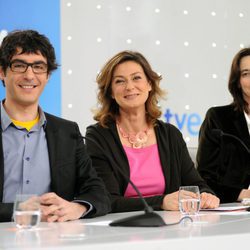 Juanra Bonet, Montse Abbad y María Maicas en la presentación de 'Gafapastas'