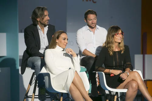 El equipo de 'OT 2017' formado por Manuel Martos, Joe Pérez-Orive, Mónica Naranjo y Noemí Galera se sienta y presta atención en el FesTVal.