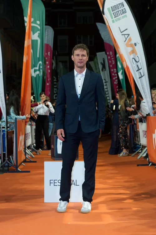 El actor de 'Traición', Eloy Azorín, ha posado sobra la alfombra naranja del FesTVal para la presentación de la serie de TVE.
