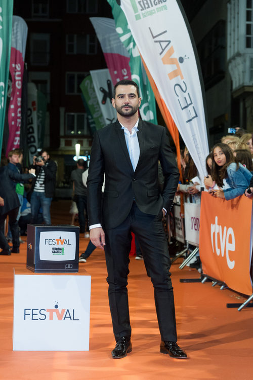 El actor de 'Traición' Antonio Velázquez ha posado junto al símbolo del FesTVal en la presentación de la serie.