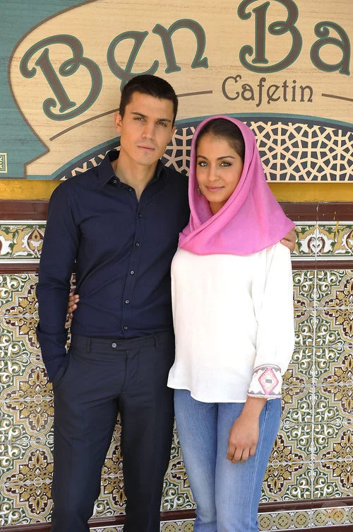 Álex González y Hiba Abouk en la presentación de 'El príncipe'