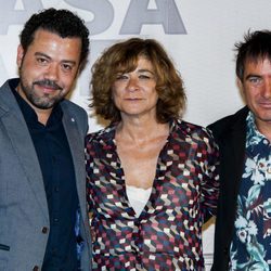 Jesús Colmenar, Álex Pina y Sonia Martínez posan en la presentación de 'La Casa de Papel'