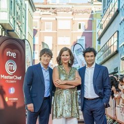 Jordi Cruz, Samantha Vallejo-Nágera y Pepe Rodríguez en la presentación de 'MasterChef Celebrity 4'