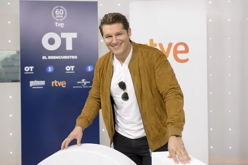 Manu Tenorio, uno de los triunfitos que más fama cogieron, posando ante los medios de comunicación en el photocall de la presentación de 'OT. El reencuentro'.