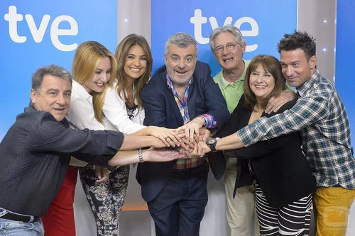 Mariló Montero y Millán Salcedo junto a los cómicos de 'El pueblo más divertido' en La 1