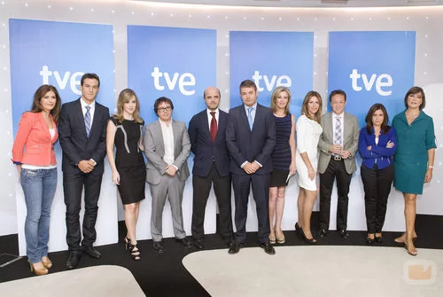 Equipo de presentadores del canal 24h, junto al director de TVE y el director de informativos