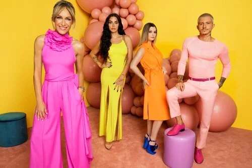 La presentadora Luján Argüelles posa junta a los colaboradores de '¿A quién le gusta mi follower?', el programa para buscar pareja de Netflix, producido por BoxfishTV.