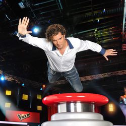 David Bisbal volando hacia el pulsador en 'La Voz 2'