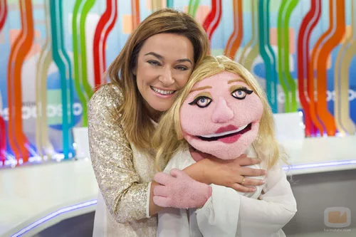 Toñi Moreno en el plató de 'Entre todos' junto a su Lunny.