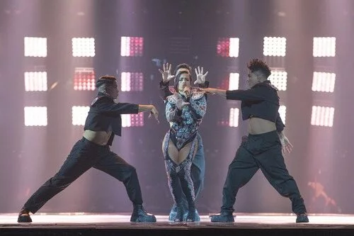 Puesta en escena de "SloMo", durante el primer ensayo de Eurovisión 2022