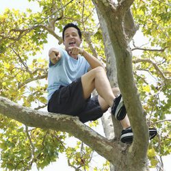 Grayson subido a un árbol en 'Cougar Town'