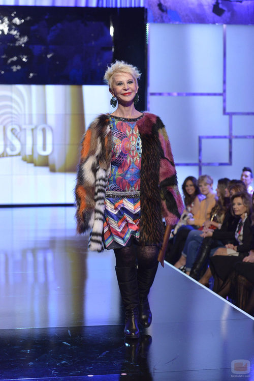 Karmele Marchante desfila con un diseño de Custo Barcelona en la pasarela de la 'Sálvame Fashion Week' de Telecinco.