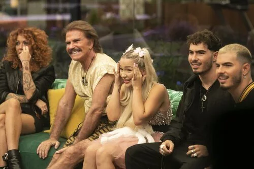 Sofía Cristo, Bigote Arrocet, Emmy Russ y Los Gemeliers, concursantes de 'Secret Story', durante la primera gala del reality producido por Zeppelin TV para Telecinco.