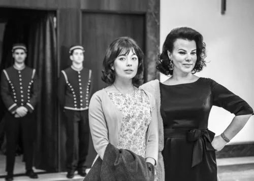 La actriz española Anna Castillo que interpreta a Pilar junto a Debi Mazar encarnando a la cantante Ava Gardner durante la primera temporada de 'Arde Madrid'.