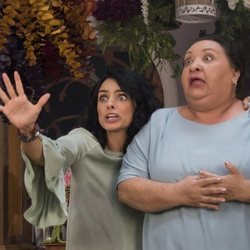 Aislinn Derbez y Norma Angélica durante una escena de 'La casa de las flores'