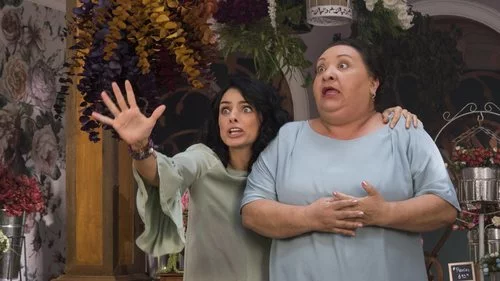Aislinn Derbez y Norma Angélica durante una escena de 'La casa de las flores'