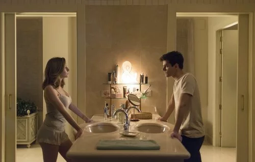 Ester Expósito y Álvaro Rico interpretan una escena en el baño mientras hablan sobre el estado de la relación de sus personajes.