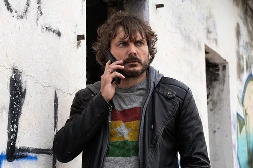 Darío Arjona (Salva Reina), hablando por el móvil en una imagen capitular de 'Malaka', serie policiaca de RTVE.
