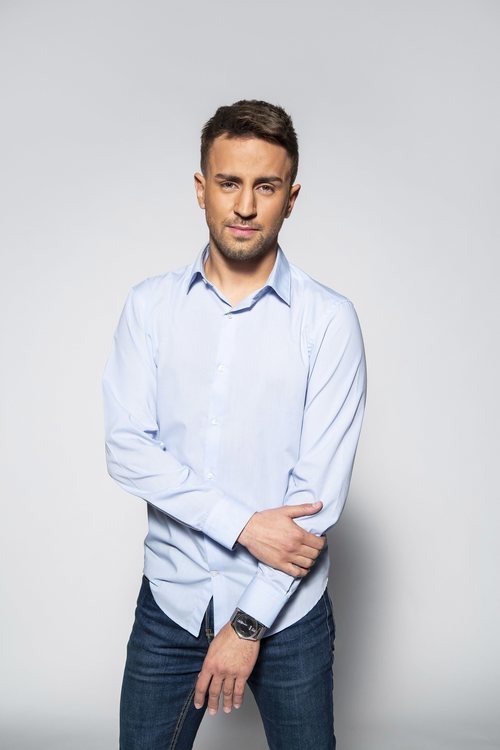 Alejandro Rodríguez posa como reportero en 'Cuatro al día', presentado por Carme Chaparro y Santi Burgoa, en el que se analizará toda la actualidad.