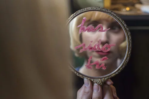Ángeles (Maggie Civantos) mira un espejo en el que está escrita la frase "Has sido tú", en una de las imágenes de la segunda temporada de 'Las chicas del cable'.