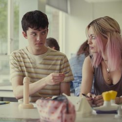 Asa Butterfield y Emma Mackey en clase de sexualidad
