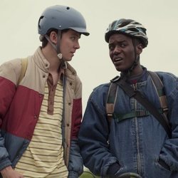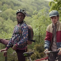 Asa Butterfield y Ncuti Gatwa con sus bicicletas en 'Sex Education'