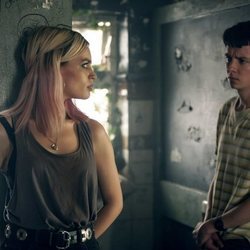 Emma Mackey y Asa Butterfield en el lugar abandonado en 'Sex education'