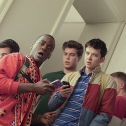 Ncuti Gatwa y Asa Butterfield sorprendidos en 'Sex Education'