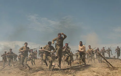 Los soldados salen corriendo en 'Tiempos de guerra' en mitad de una batalla.