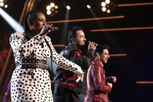 El equipo de Luis Fonsi canta "Échame la culpa" en el primer directo de 'La Voz'