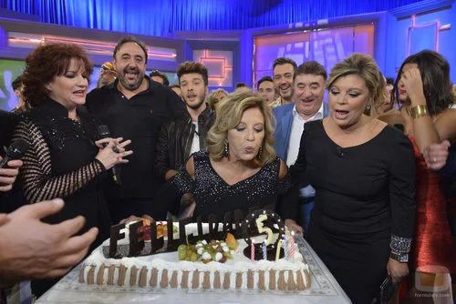 María Teresa Campos sopla las velas de la tarta del 5º aniversario de '¡Qué tiempo tan feliz!