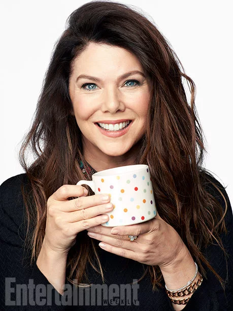 La actriz Lauren Graham que da a vida a la protagonista Lorelai Gilmore, posa para la promoción del regreso de 'Las chicas Gilmore' sonriente y con una taza.