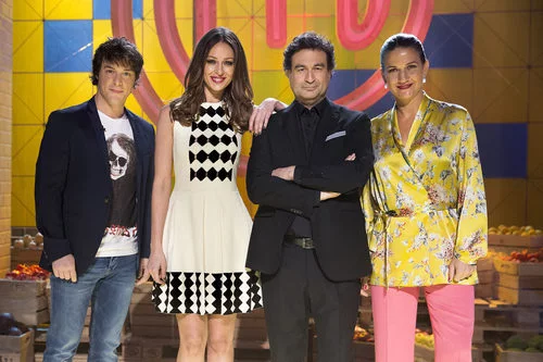 Eva González junto al jurado de Masterchef Jordi Cruz, Pepe Rodríguez y Samantha Vallejo-Nágera en el estreno de la quinta temporada del concurso.