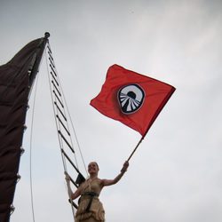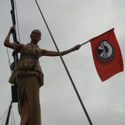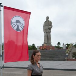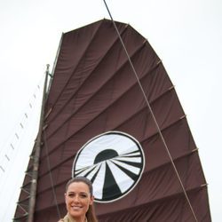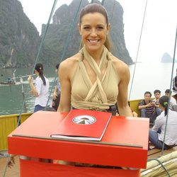 Raquel Sánchez Silva junto a la bandera de 'Pekín express'