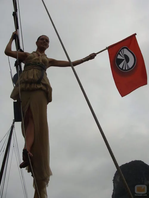 Raquel ondea la bandera de 'Pekín express' en un junco de la Bahía de Along.