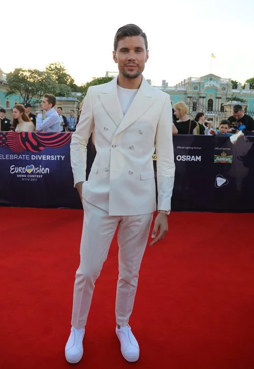 El representante de Suecia, Robin Bengtsson, acude a la alfombra roja del Festival de Eurovisión 2017 en Kiev.