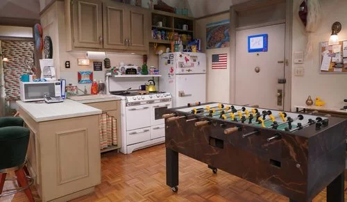 Fotografía de uno de los decorados recurrentes de 'Friends: The Reunion': la cocina del piso de Chandler y Joey con el futbolín.