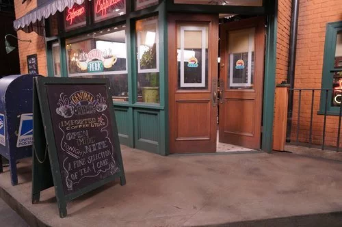 Fotografía del decorado de 'Friends: The Reunion' donde se muestra la entrada a la cafetería Central Perk, uno de los puntos de reunión más recurrentes de la sitcom.