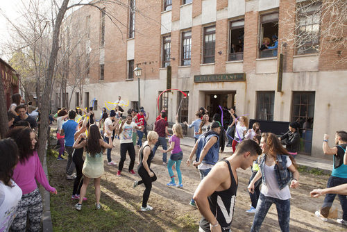 Escena del capítulo "Confianza", con los personajes a las puertas del centro de formación artística.