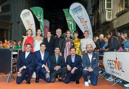 Todos los actores de la serie 'Tiempos de guerra' posan con sus mejores galas en la alfombra naranja del 'FesTVal'