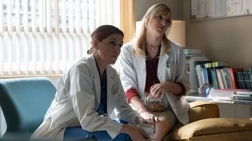 Los personajes de Ana Rayo y Abril Zamora sentadas en una sala de espera en la serie 'Respira', que se estrena en Netflix el 30 de agosto.