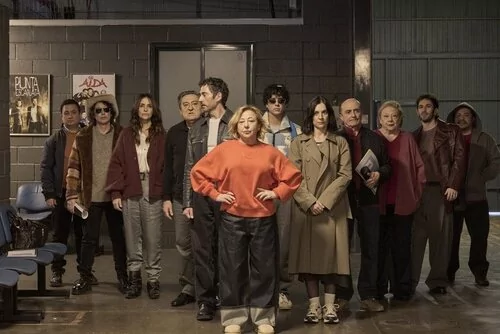 Carmen Machi, Paco León, Miren Ibarguren, Mariano Peña, Eduardo Casanova, Pepe Viyuela, Melani Olivares, Canco Rodríguez, Secun de la Rosa, David Castillo, Marisol Ayuso, Óscar Reyes y Pepa Rus en el rodaje de la película de 'Aída'.