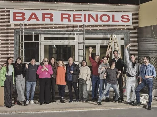 El reparto de 'Aída y vuelta' delante del Bar Reinols