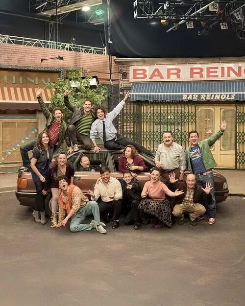 El reparto de 'Aída y vuelta' en la plaza de Esperanza Sur