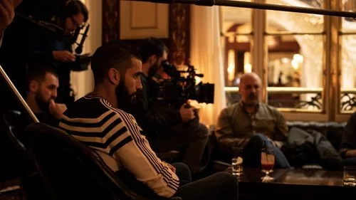 Álex García, Roberto Álamo y Raúl Arévalo, detrás de las cámaras, durante el rodaje de 'Antidisturbios', ficción creada por Rodrigo Sorogoyen e Isabel Peña.