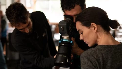 La actriz Vicky Luengo, que da vida a Laia, en un momento del rodaje del thriller de acción 'Antidisturbios', creada para Movistar+ por Rodrigo Sorogoyen e Isabel Peña.