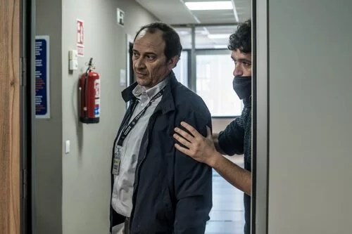 El director de 'Apagón', Rodrigo Sorogoyen, es el encargado de dirigir al actor Luis Callejo durante la rodaje.